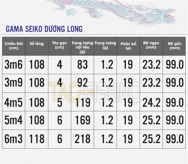 Cần Tay Gama Seiko - Dương Long 5H 4m5 : 2.800.000đ