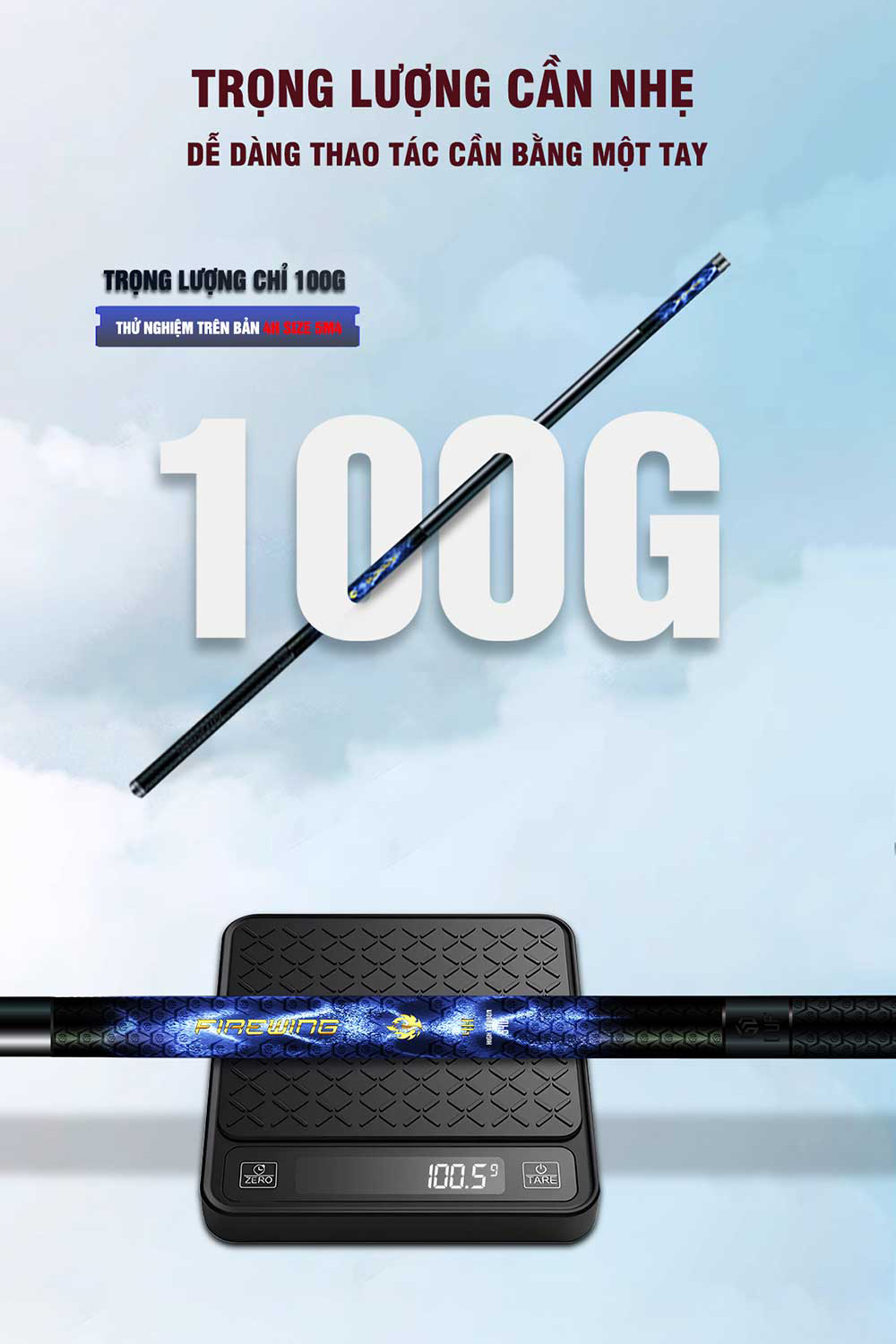 - Với trọng lượng nhẹ chỉ 100gr cho size cần 5m4 bản 4H