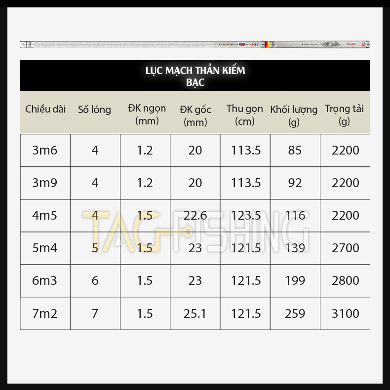 Cần tay Guide Lục Mạch Thần Kiếm ( Bạc ) 5H 28i 3m6 : 900.000đ