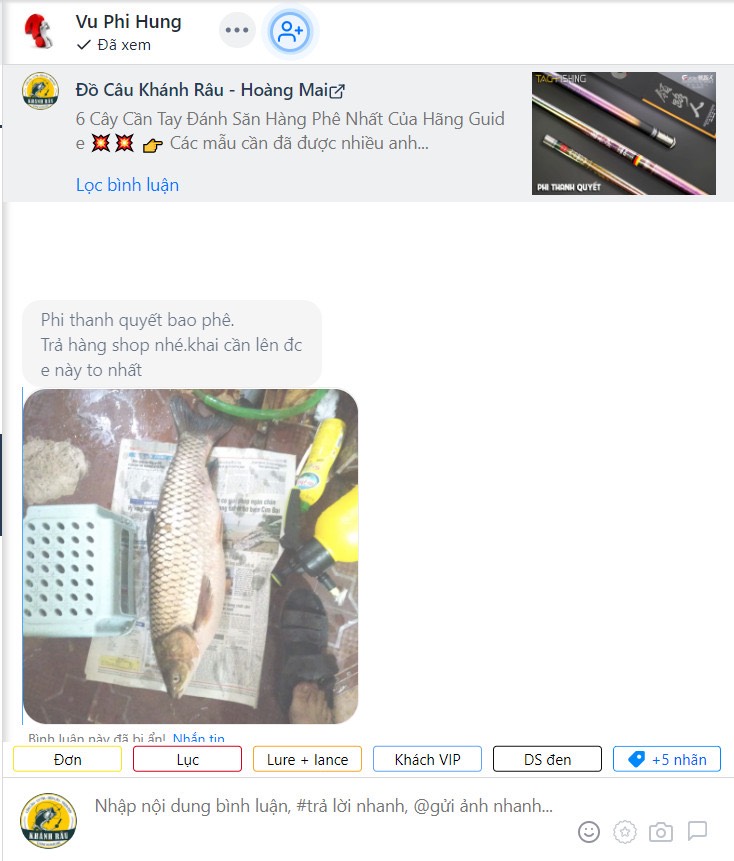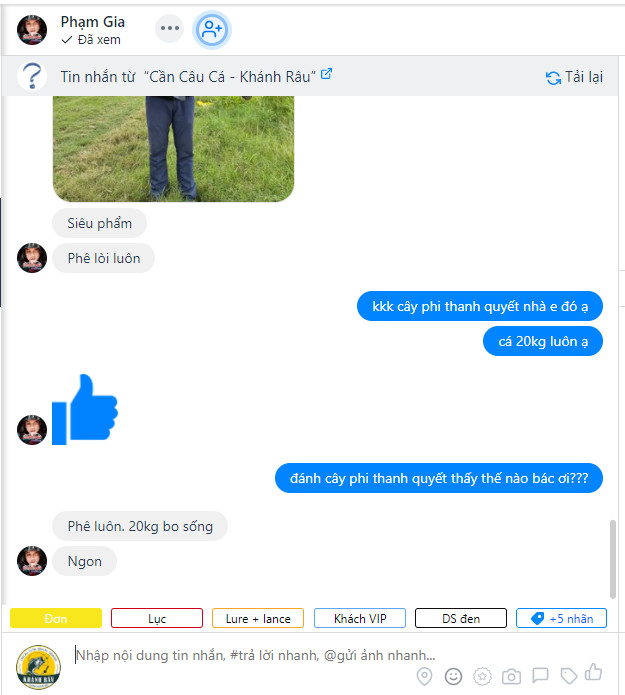 Fanpage : Cần Câu Cá - Khánh Râu ; nhắn tin Facebook : Mess- Khánh Râu