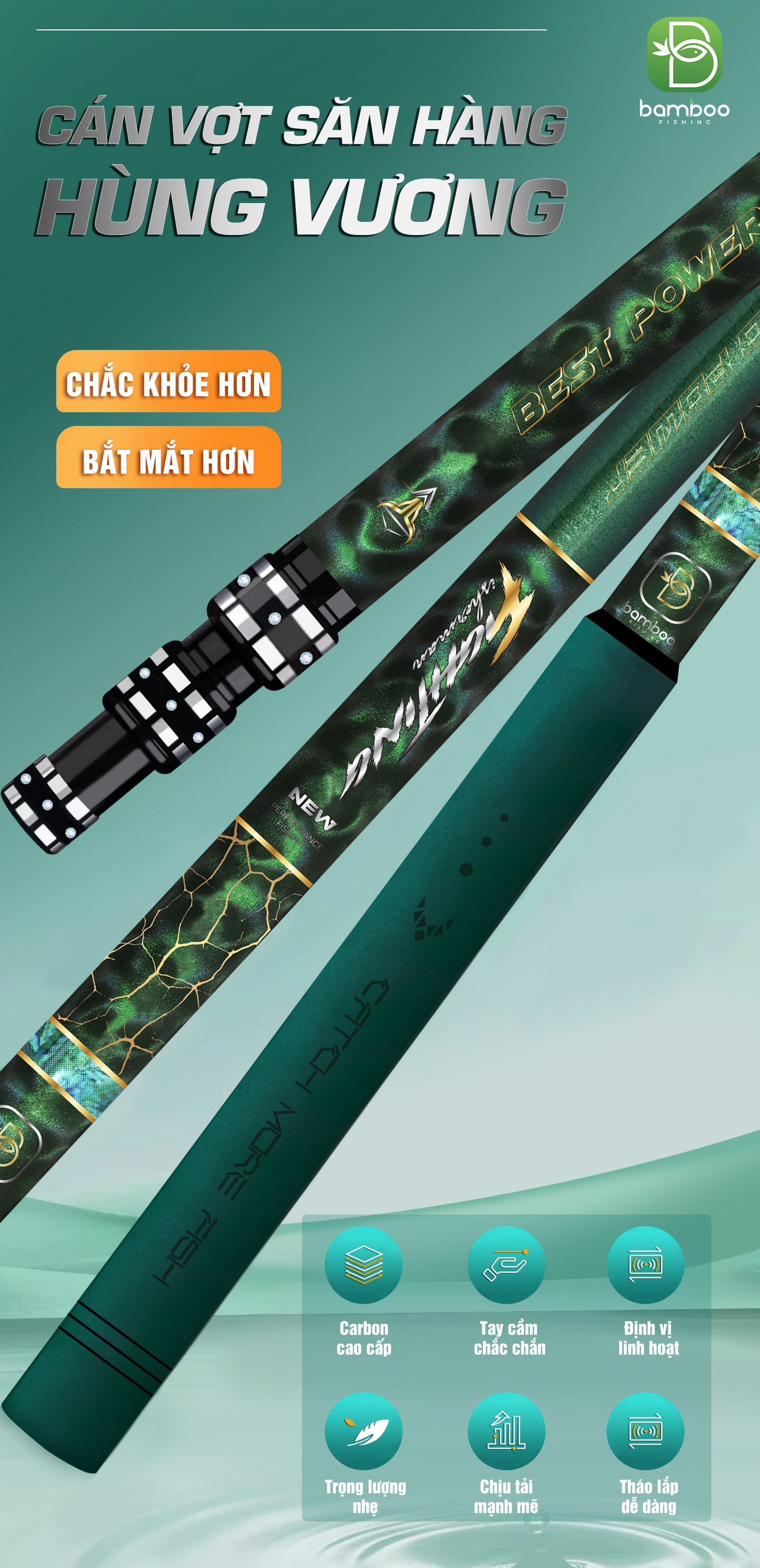 Tên sản phẩm : Cán Vợt BamBoo Hùng Vương Săn Hàng
