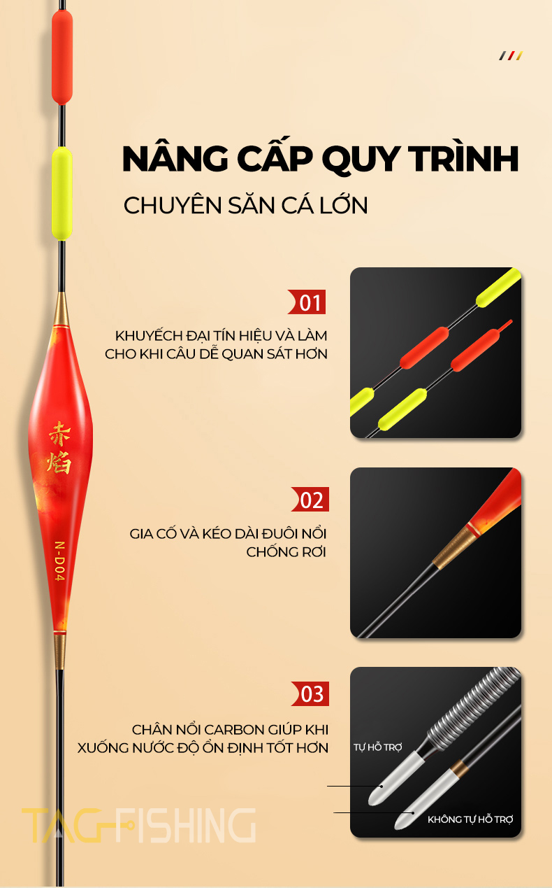 Đặc Biệt : Sản phẩm được hoàn tiện tỉ mỉ, chi tiết từng phần như tăm phao, thân phao hay chân phao đều được thiết kế sắc nét