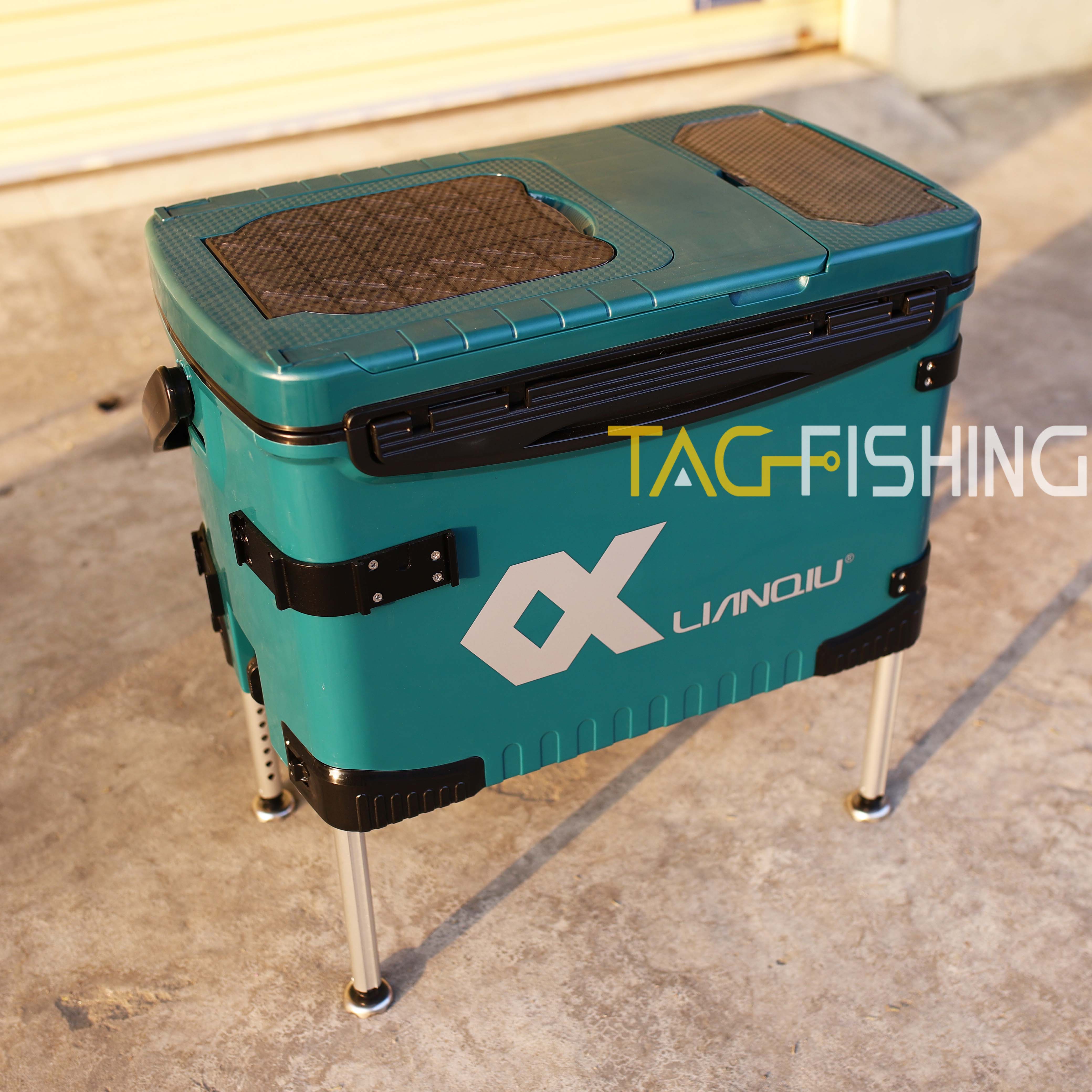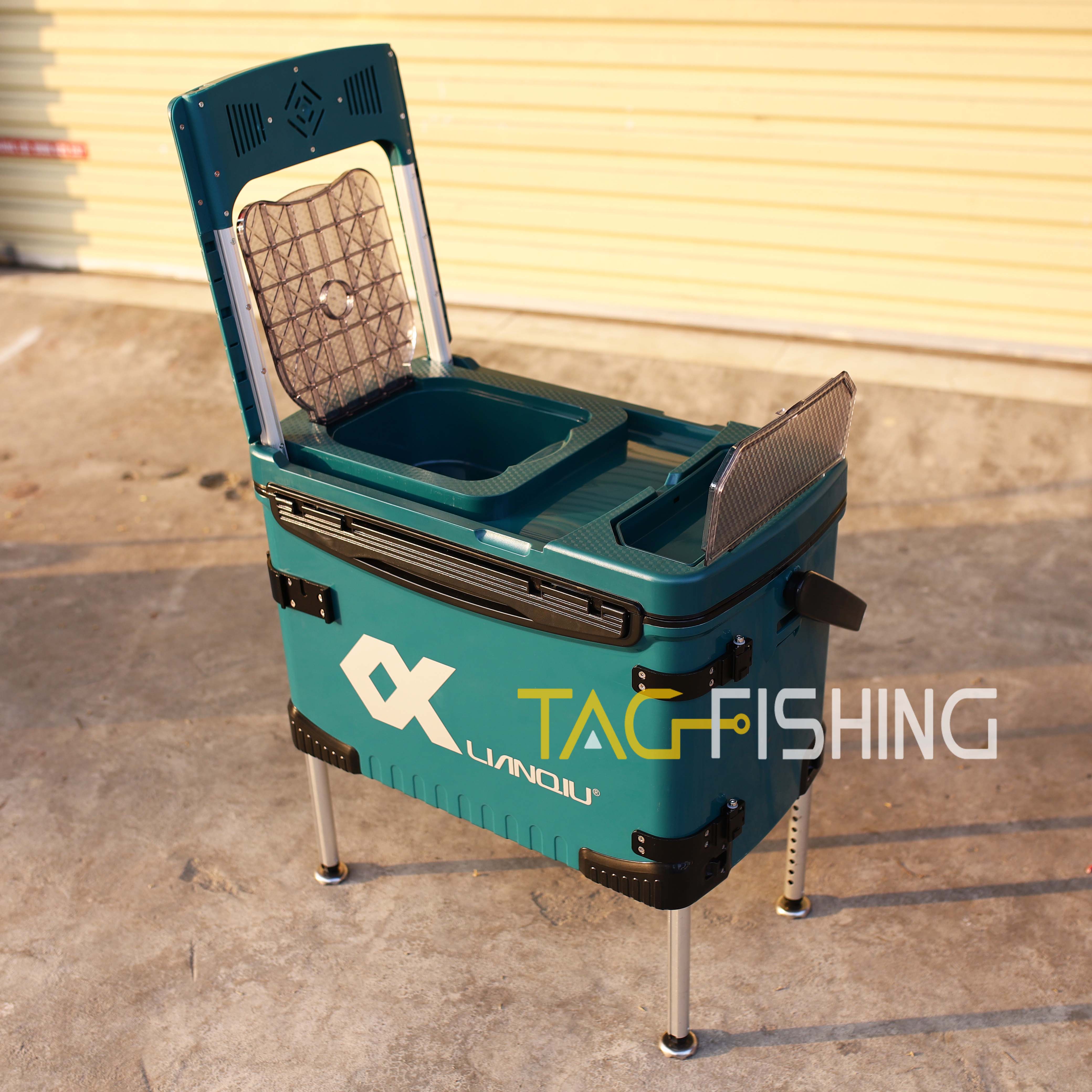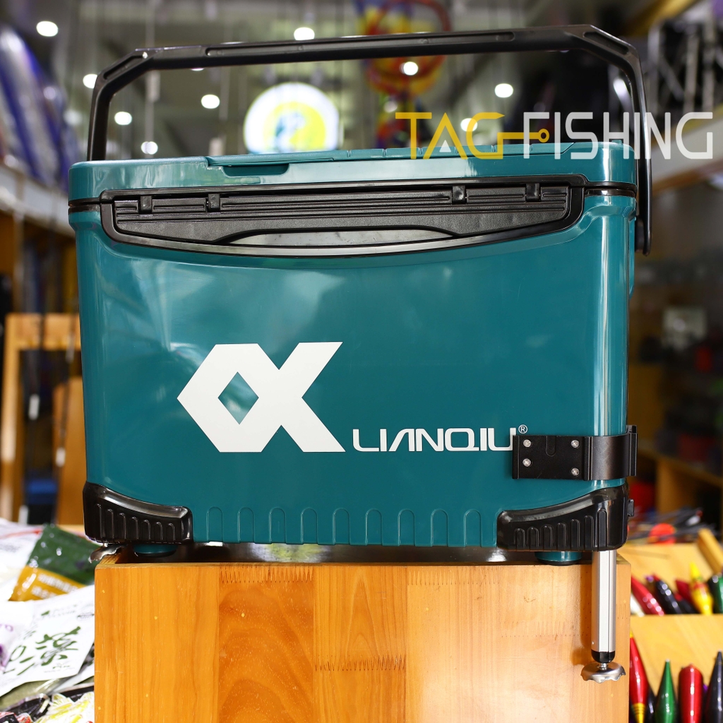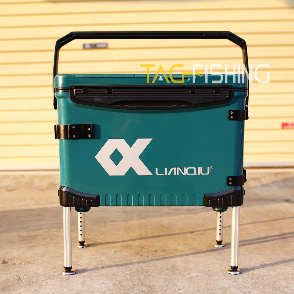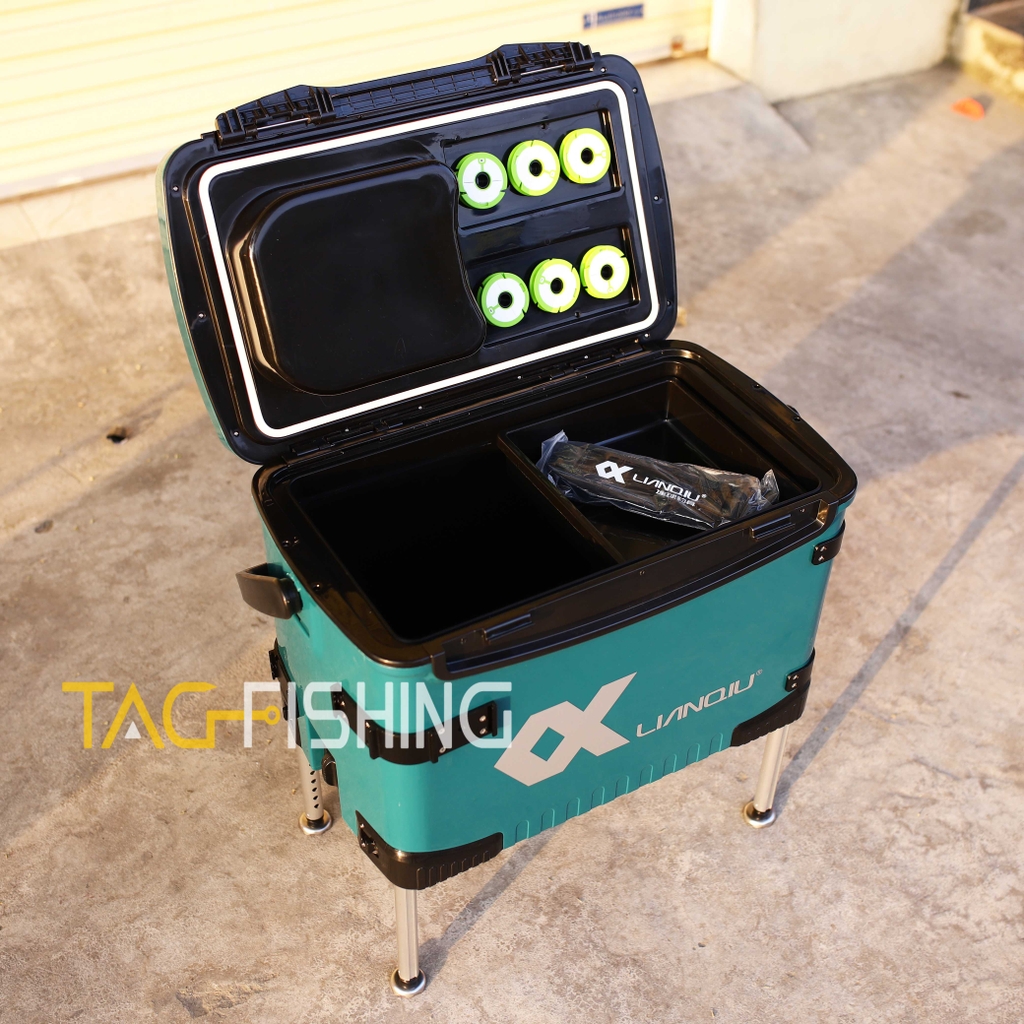 Đặc Biệt : Thùng có tựa lưng gập ẩn - và trên mặt có hai ngăn đệ phụ kiện câu đơn đài - Dưới nắp thùng cũng có ngăn để phụ kiện