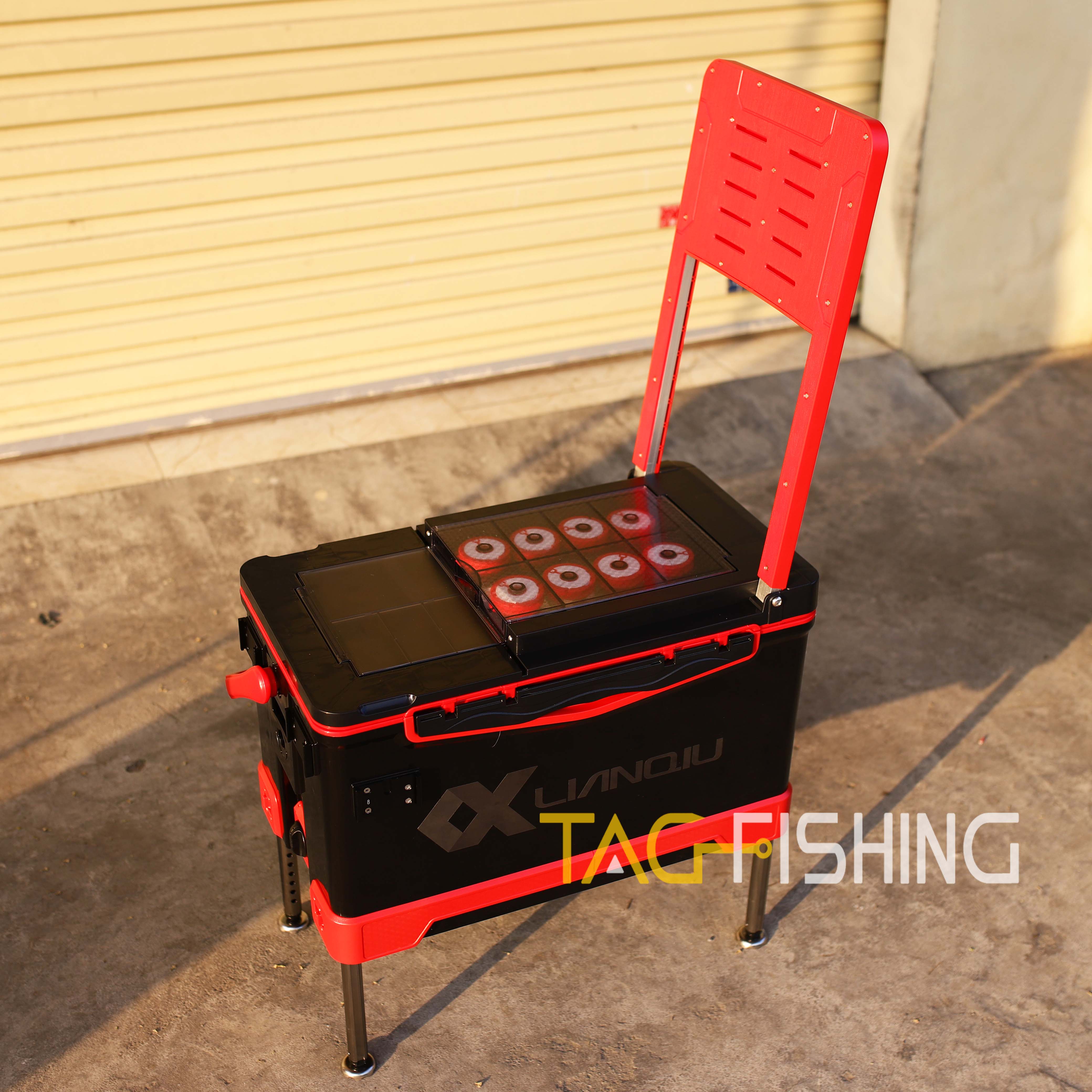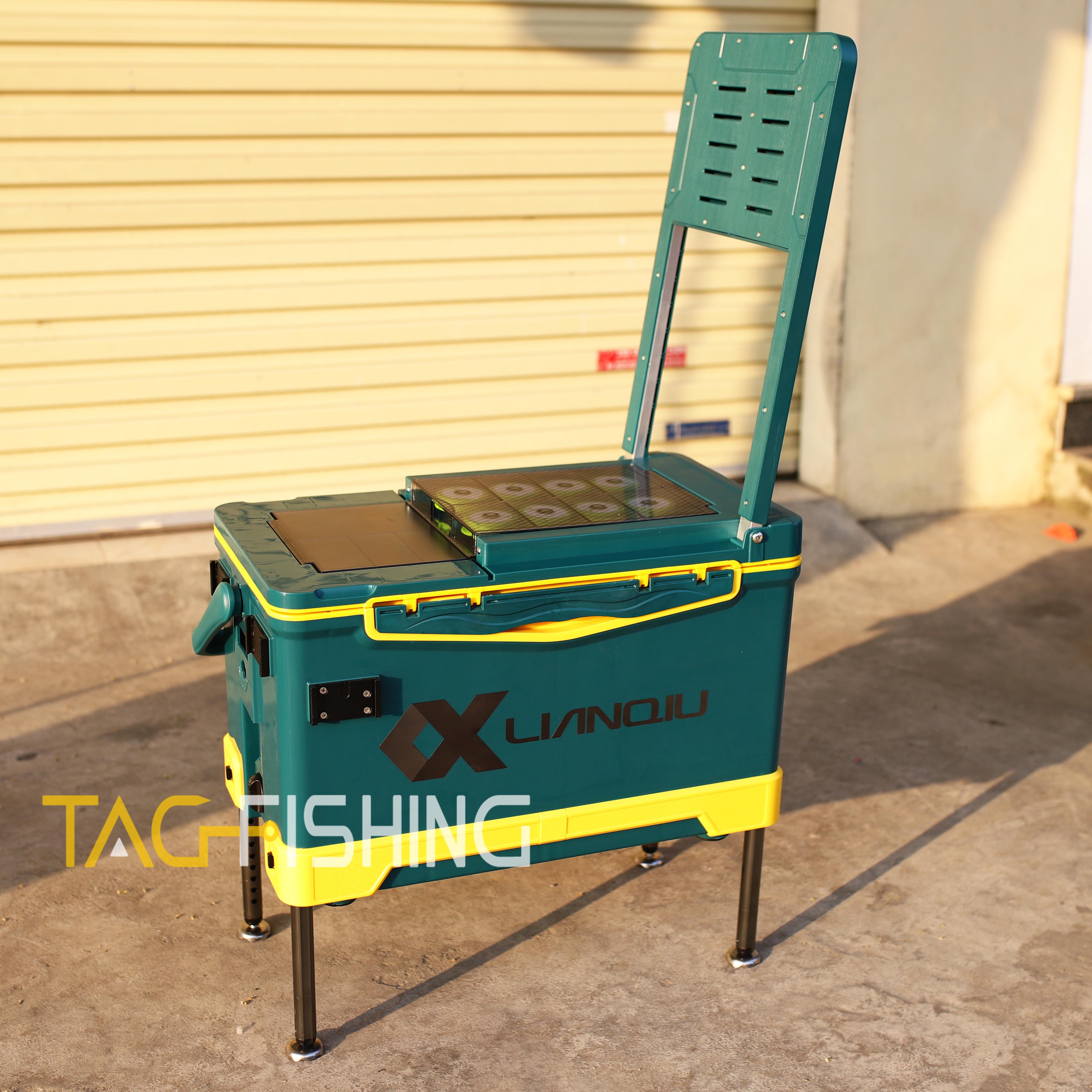 Đặc Biệt : Thùng có tựa lưng gập ẩn - và trên mặt có nhiều ngăn đệ phụ kiện câu đơn đài