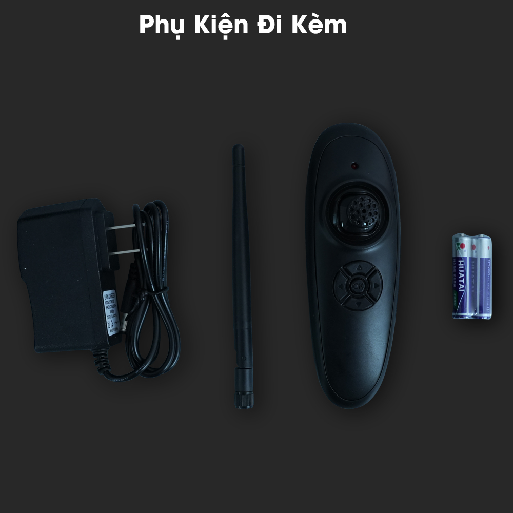 Phụ kiện Chính đi kèm : Dây sạc + pin + điều khiển + ăng ten
