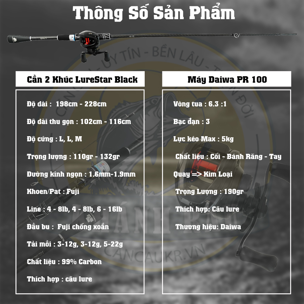 - Cần 2 Khúc Lure Star Black C762M 2m28 : 1.800.000đ