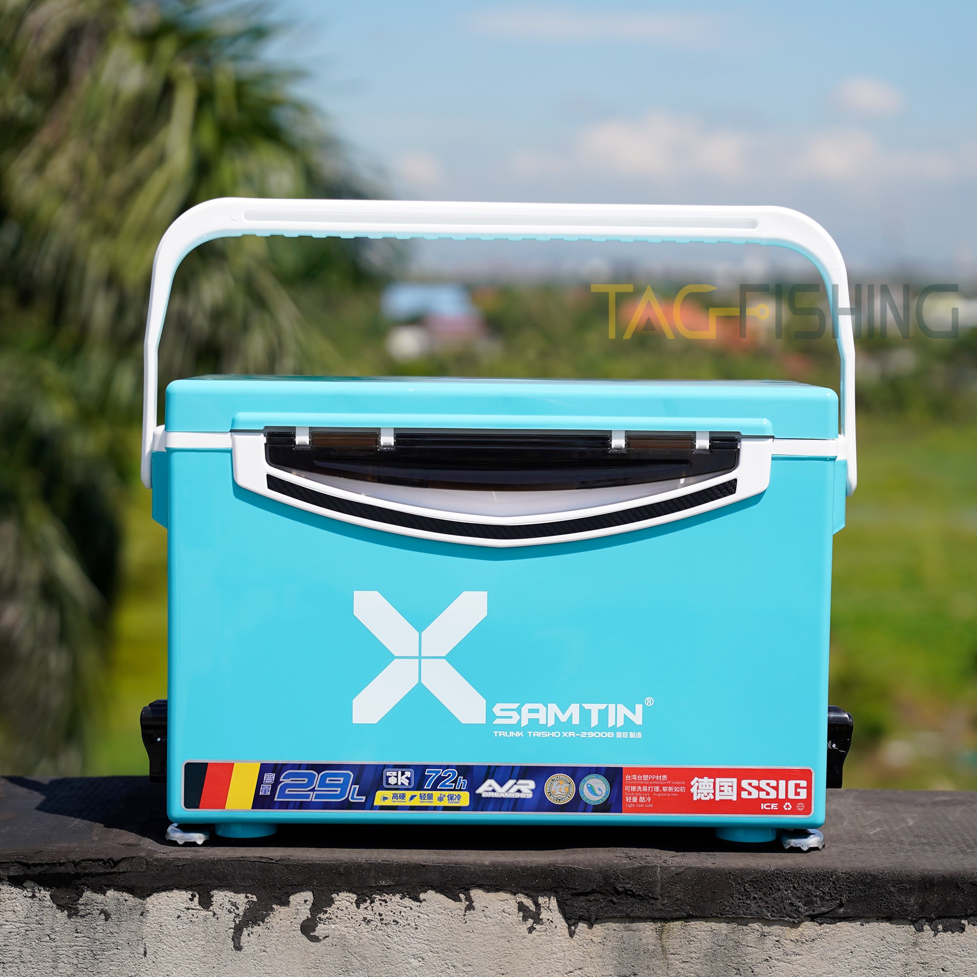 Đây là một mẫu thùng có kích thước vừa phải, tiện dụng và đa năng nên được giới cần thủ rất săn đón. Với dung tích 29L, trọng lượng 4.67kg, kích thước D x R X C là 52cm x 29cm x 34.5cm, chiều dài chân là 13cm, có đa dạng các màu sắc để chọn lựa: Xanh ngọc - Đen - Trắng - Đỏ - Xám, thùng câu Xsamtin 2900B là một sản phẩm không thể bỏ qua trong năm 2022. Xin mời các cụ chiêm ngưỡng vẻ đẹp của em nó:
